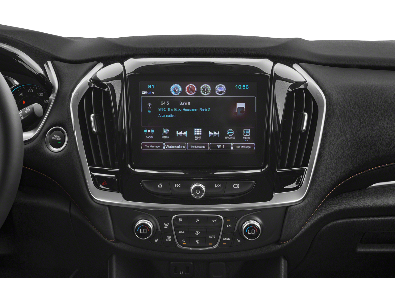 - Audio system, Chevrolet Infotainment System with 8" diagonal color touch-screen and AM/FM stereo, includes Bluetooth streaming audio for music and most phones; featuring Android Auto and Apple CarPlay capability for compatible phones