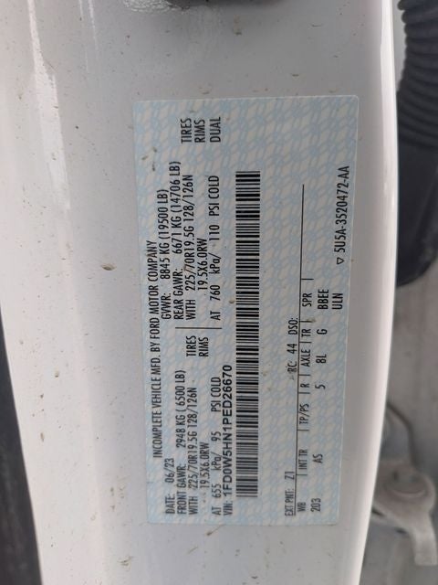 CARFAX One-Owner. 2023 Ford F-550SD XL DRW 4WD -, F-550 SuperDuty XL DRW, 4D Crew Cab, 7.3L V8 PFI OHV 16V Federal 335hp, 10-Speed Automatic, 4WD, Oxford White, Medium Dark Slate Vinyl, 120V/400W Outlet, Brake assist, Bright Grille, Chrome Front Bumper, Delay-off headlights, Ford Pro Upfit Integration System Removal, GVWR: 18,000 lbs Payload Package, GVWR: 19,500 lb Payload Plus Upgrade Package, Halogen Fog Lamps, Order Code 660A, Power Sliding Rear Glass, Power steering, Power windows, Rear Window Defroster, Remote keyless entry, Remote Start, Snow Plow Prep Package, Stainless Steel Wheel Covers (Pre-Installed), SYNC 4 Communications & Entertainment System, Traction control, Wheels: 19.5 x 6 Argent Painted Steel, XL Chrome Package. 4WD