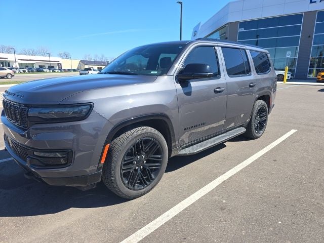 2024 Jeep Wagoneer Series II 4WD! 4WD! 4D Sport Utility Baltic Gray Metallic Clearcoat 4WD Wagoneer Series II 4WD!, 4D Sport Utility, 3.0L I6, 8-Speed Automatic, 4WD, Baltic Gray Metallic Clearcoat, Black Leather, 10 Speakers, 2 Speed On Demand Transfer Case, 3 Panel Sunroof, 3.92 Rear Axle Ratio, 40/20/40 2nd Row Bench Power Tip/Slide, 60/40 Power Recline 3rd Row Seat, 8-Passenger Seating, Adjustable Roof Rail Crossbars, AM/FM radio: SiriusXM with 360L, Auto-leveling suspension, Automatic temperature control, Black Interior Accents, Brake assist, Carbide Appearance Package, Cargo Cover, Electronic Rear Limited Slip Differential, Electronic Stability Control, Exterior Parking Camera Rear, Flexible Seating Group, Four wheel independent suspension, Front fog lights, Full Length Floor Console, Fully automatic headlights, HD Trailer Tow Package, Heavy-Duty Engine Cooling, Memory seat, Navigation System, Panic alarm, Pedal memory, Piano Black Exterior Accents, Power driver seat, Power Liftgate, Quick Order Package 25F Carbide, Radio: Uconnect 5 Nav w/10.1 Display, Removable Rear Tow Hook, Reversible Carpet/Vinyl Cargo Mat, Security system, Selec-Speed Control, Speed control, Traction control, Trailer Brake Control, Trailer Hitch Zoom, Wheels: 20 x 9 Gloss Black Painted Aluminum. Priced below KBB Fair Purchase Price!