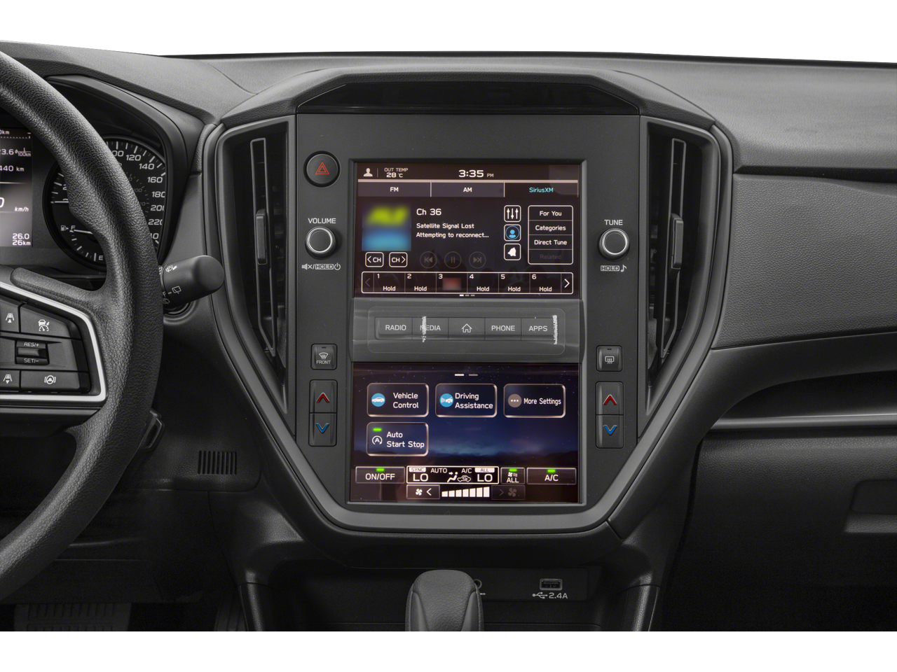 - Radio: Subaru Dual 7" Multimedia System -inc: AM/FM stereo, HD radio, multi-touch gesture high resolution display screen, voice activated controls, Bluetooth audio streaming and hands-free phone connectivity, Bluetooth hands-free SMS text messaging connectivity, iPod control capability, SiriusXM (4 months free trial/subscription required after), smartphone integration: wired Android Auto, wired Apple CarPlay, USB audio system update, audio system and Buletooth steering wheel control switches, 4 speakers, illuminated 3.5mm auxiliary input jack, illuminated USB A input charge port and roof mounted black antenna